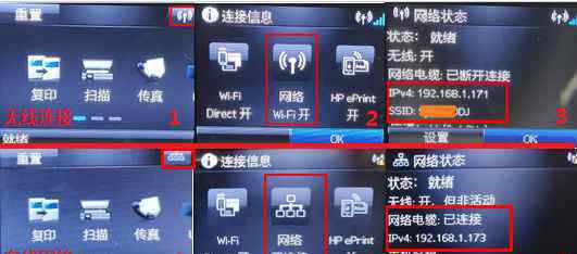 2.M227fdn、M227sdn等关键面板型号检查面板屏幕确认IP,等待一分钟左右,屏幕应直接显示IP地址。如果没有显示,请点击面板上的扳手设置菜单-报告-网络总结,打印出报告后检查IP地址。