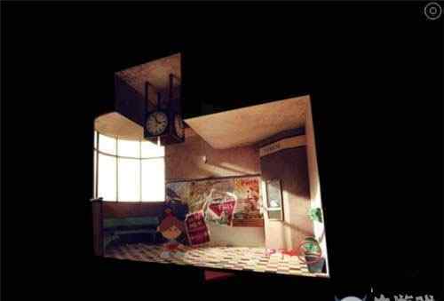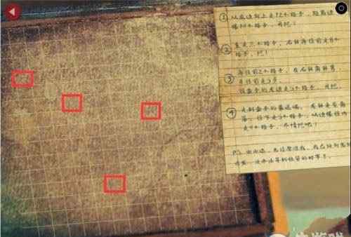 然后走出老妇人的房间,点击中间的亭子,会出现一个控制面板。根据游戏中的设计图调整每种颜色的位置。调整好颜色后,会出现一个拼图楼梯,跳下楼梯到楼道去下一个场景。