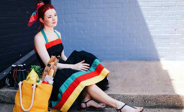 JaneAldridge是著名时尚博客《鞋海》的博主。她15岁开始写博客,从此活跃在时尚界。之前看了无数的博客和照片,其实感觉麻木了,看起来也一样~但是第一次打开她的博客的时候,我被这张图惊呆了!白皙的皮肤,火红的头发,凸显五官的干净妆容,搭配复古裙装的裸色上衣,复古的腰带和首饰,身后的罗马风高跟凉鞋和姜黄色的民族帆布包,真的很美!
