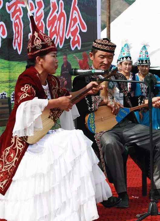 图片说明:哈萨克族民间有这样一个美丽的传说:从前,在美丽富饶的阿勒泰草原上,有一个比鲜花还美丽的哈萨克姑娘。她唱歌的时候,草原上所有的奇花异草都点头嘲笑她,连飞鸟都停下来听。她爱一个勤劳勇敢的哈萨克男孩。他们经常一起唱歌,边唱边弹东不拉。一个夏天,人们聚集在女孩身边听她唱歌。一位领导骑马经过,被甜美的歌声吸引住了。当他走近时,发现她是一个非常英俊的女孩,所以他的心很坏。第二天,有人被派去强迫女孩嫁给他。女孩很着急,爱人不在身边,只好弹东不拉,唱一首悲伤的歌,为远方的心上人呐喊。这时,一匹骏马突然从天而降,把女孩带到了天空空。女孩赶紧把东布拉扔到地上。在那半空里,冬不拉在一瞬间变成了千千万万个冬不拉,像雪花一样落入人们的手中。于是,大家一起弹东不拉,高声歌唱,祝愿这对恋人永远自由幸福。从此,每年夏天,人们都会聚集在草原上尽情歌唱,怀念这对自由快乐的恋人。所以阿金歌会年年传承。每年夏天,天气好、草多的时候,哈萨克人都会在某一天举行“阿肯弹唱会”。那时,人们会聚集在草原上,搭起帐篷,在附近的草原上放牧牛羊。来自世界各地的“阿肯”人将演奏东布拉乐器,展示他们的歌唱嗓音;人们围坐在一起听着唱着,陶醉了。阿肯有很多种唱诗班,如独唱、二重唱、合唱等。大多是传统叙事长诗和民谣。此外,除了传统曲目外,阿肯斯还经常即兴作词,歌颂草原生活,表现他们对自由民主的理想追求。而在此期间,赢家是出场时间最长、口才最流畅、声音最大、最吸引观众的人,受到人们的高度尊重。
