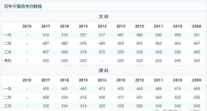 宁夏回族自治区2018年各批次高校招生录取控制分数公布如下: