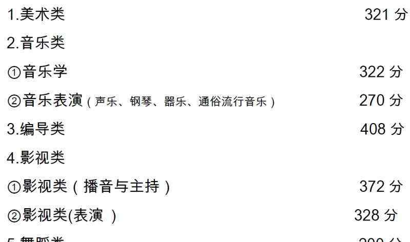 本科舞蹈科学、舞蹈表演、舞蹈编导、表演(京剧表演)控制分数线为240分