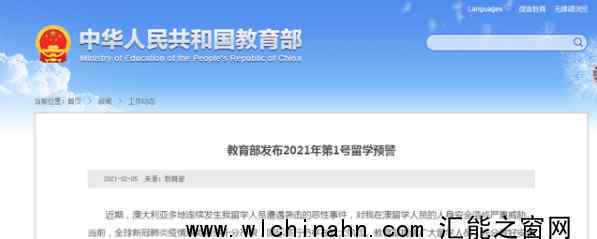 5日,教育部发布今年(2021年)“第1号留学预警”:请谨慎选择赴澳或返澳学习!! 教育部:谨慎选择赴澳或返澳学习 据媒体报道,近期,澳大利亚多地连续发生我留学人员遭遇袭击的恶性事件,对我在澳留学人员的人身安全造成严重威胁。当前,全球新冠肺炎疫情形势依然十分严峻,国际旅行仍存在较大...