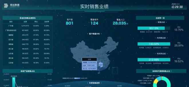 在显示层面,远观数据提供大数据屏、移动灯光应用、Web广告牌等显示形式。各级管理人员可以根据需要随时随地查看地区、门店的实时数据指标,方便及时调整业务,也可以根据某些指标的变化,向下钻取,找出变化的原因。