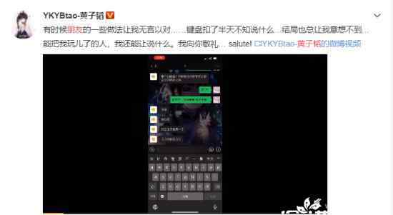 黄子韬在微博上晒出这段搞笑的聊天记录,配文表示:“有时候朋友的一些做法让我无言以对……键盘扣了半天不知说什么…结局也总让我意想不到…能把我玩儿了的人,我还能让说什么。我向你敬礼… salute! ”