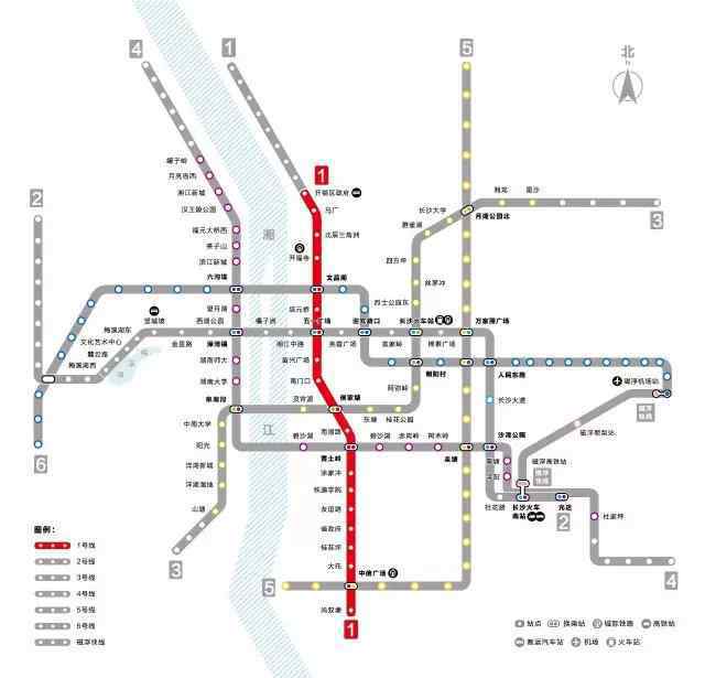 1号线贯穿城市南北轴线,起点为开福区政府站,终点为上黄堂站,与2号线一期形成长沙轨道网“十字”核心骨架网。