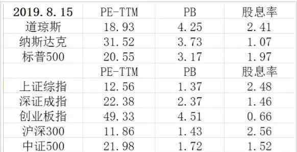 美股和a股估值比较: