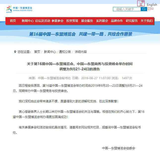2.《东盟博览会时间 第16届中国-东盟博览会举办时间调整为9月21—24日》仅供读者参考,本网站未对该内容进行证实,对其原创性、真实性、完整性、及时性不作任何保证。