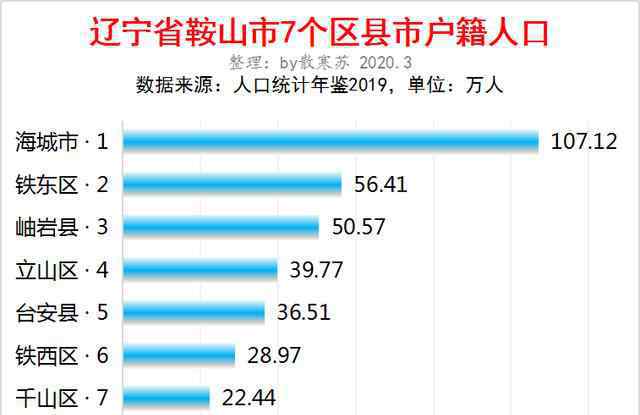 辽宁省鞍山市7个区县登记人口;