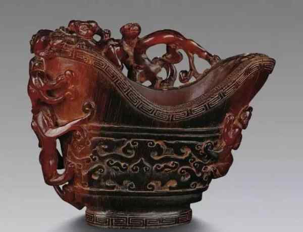 汉宋玉刻犀牛,宋明犀牛角杯仿玉。杯子的杯沿和杯把可以做成高浮雕辟邪,也可以雕刻成龙和升天的龙,也可以雕刻成灵芝和仙草,再雕刻成锦荔枝、玉兰等花果和其他山水亭台楼阁。总之,量大,风格变化大。
