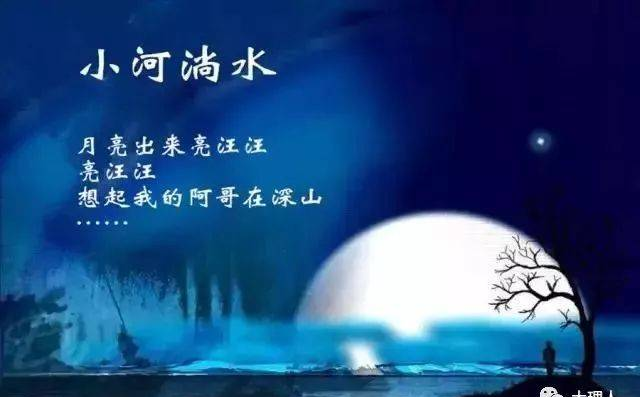 《小河淌水》曲调从容舒展,自由的节奏回环起伏,清新的旋律充满了浓郁的弥渡民间音乐韵味,散发着弥渡泥土芳香的歌词,质朴自然,富于想象,淋漓尽致地吟咏出了聪慧的阿妹在深山望月抒怀、思念阿哥的淳朴心情,唱出了恋人相思却不能见面的浓浓牵挂和荡气回肠的眷念,活脱脱地刻画出了一幅“两情相依山隔断,相望不知人何处。月光照着两颗心,缱绻羡爱难相见”的艺术意境。