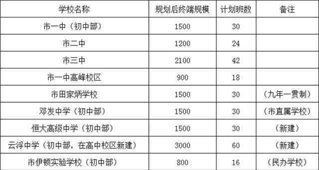 2.上述建设项目完成后,中心城区中小学总体布局将进行调整,恒大高中将成为示范完整中学。具体规划如下: