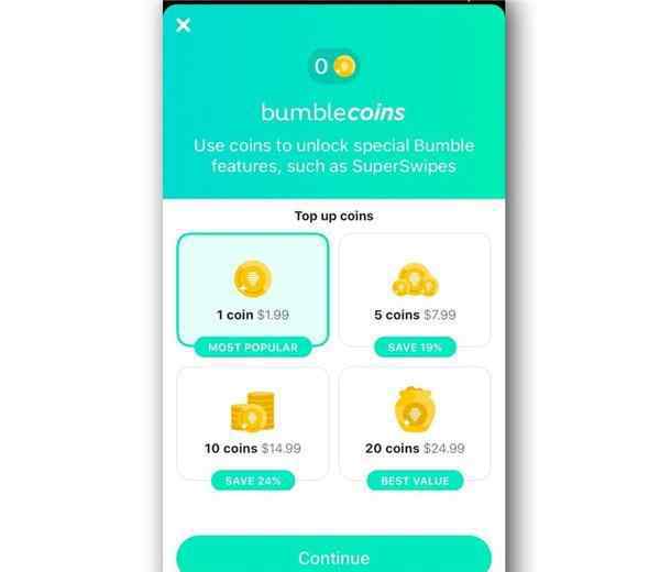后者是app内付费产品,用来购买所谓的SuperSwipes。在为某个用户使用了superswips之后,Bumble会提示另一个用户你已经为TA使用了superswips,这是一个用来表达“非常感谢”的工具。