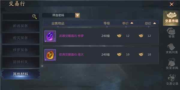 当然,如果你想得到设备,也可以从交易银行购买。选择想要购买的材料并输入仓储费后即可发布信息。