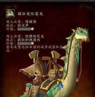 雷龙是魔兽世界8.0版艾泽拉斯的坐骑。从外观上看,这个坐骑太大了,很多玩家抱怨不好看。从价格上看,它甚至超过了血齿蜘蛛,达到了500万金币,成为魔兽世界迄今为止最昂贵的坐骑