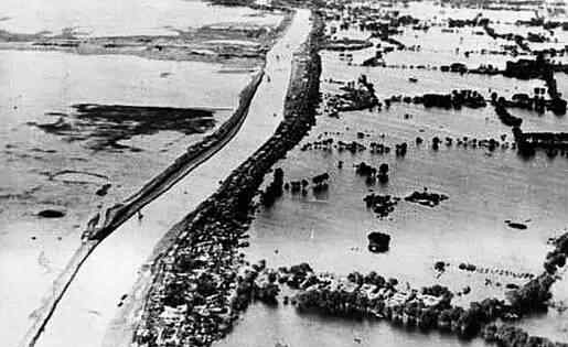 破门而入的官兵听到了无尽的爆炸声,他们很担心,但他们日夜工作,努力挖掘。6月10号10点,突然下起了倾盆大雨。大雨有利于决口的增加,洪水最终冲垮了两个决口之间50米长的河道。至此,黄河改道,河水满溢,纵身千里...