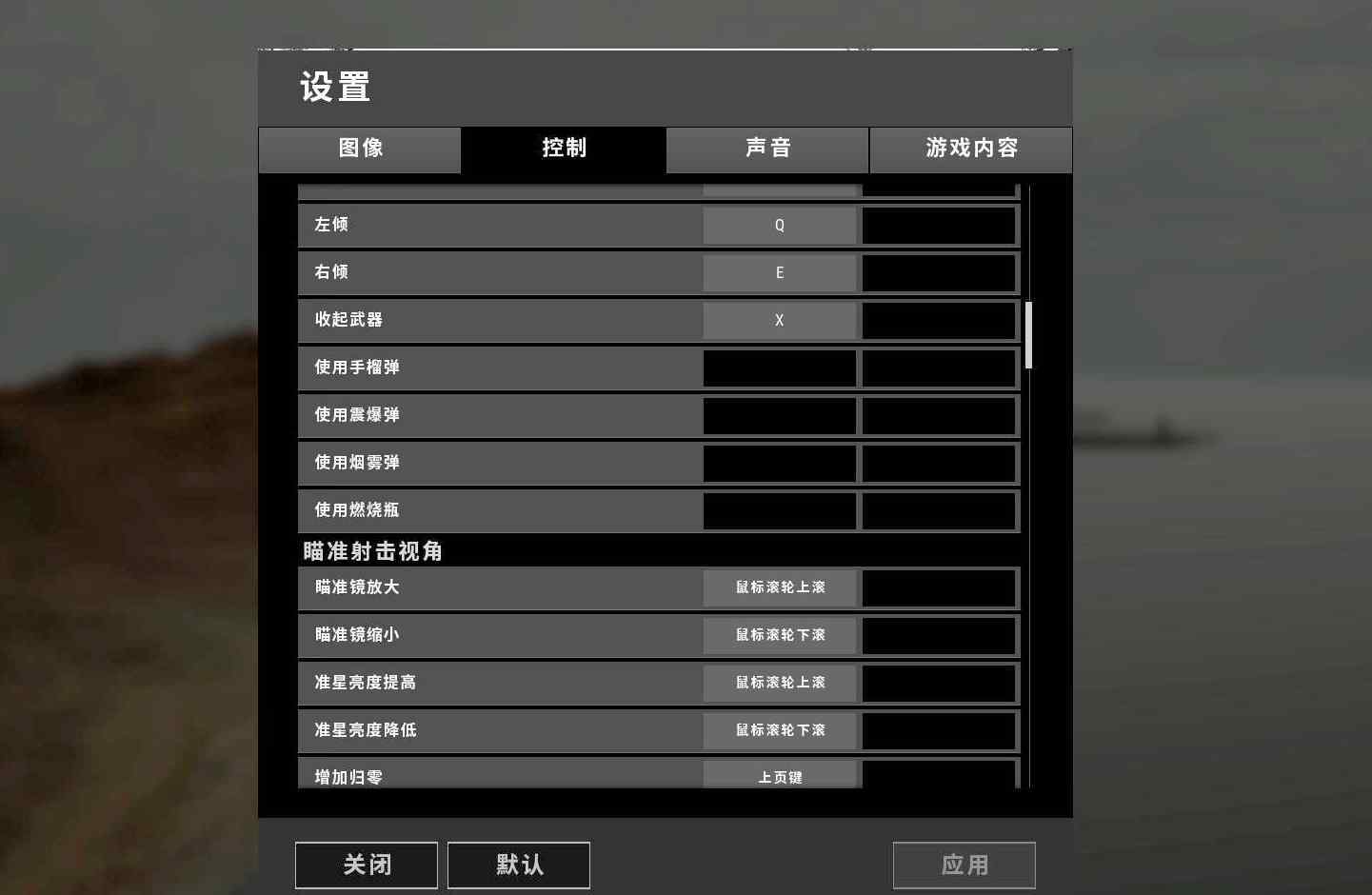调整瞄准射击的设置为按住,将按钮改为鼠标右键,将瞄准即腰射改为侧键,屏息将主辅键改为qe。这样,只要把头伸出来,按下鼠标右键,就可以屏住呼吸,打开镜子。松开鼠标,立即缩回去。有多快?