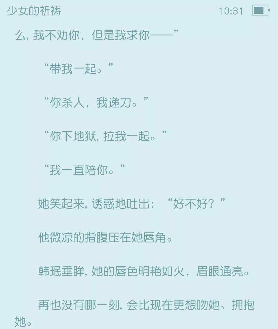 就像这个推的副标题说的,看了十几年的言情,经常会遇到“啊,我真的很喜欢男主,如果他在的话...不会有事的”;心里想象过各种男主。这一年,终于如愿以偿。这么多年,我想等待的只有这篇文章,这样的男主,这样的女主,这样的故事,这样的爱情...不是说多好,作者写的多牛逼,纯爱,爱!2017年,我个人的第一号~目前微信官方账号所有推文最高等级,送给我心爱的韩先生。