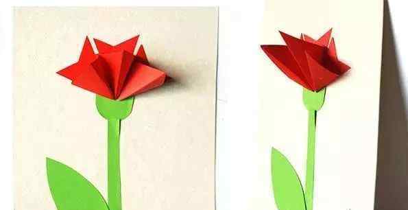 郁金香花蕾难度适中,以张明亮的一张硬纸板为背景,加入了叶子和茎干,贺卡中产阶级的孩子可以轻松握住。
