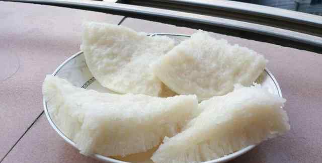 首先将250克水和白糖倒入牛奶锅煮沸,停火冷却,然后将250克糯米粉和250克水同时倒入打蛋盘中,用打蛋器将酵母搅拌成30克水,直到没有颗粒,搅拌均匀,将练习1的糖水倒入练习2,搅拌均匀, 然后将其倒入练习3中的酵母中,充分混合,用保鲜膜覆盖,并在阴凉处放置约3小时,直到表面出现微小气泡,并轻微混合发酵后的粉末浆料。 然后将清水倒入锅中,取一个大不锈钢盘,均匀涂上一些花生油,稍微蒸一下,倒入粉浆中,大火蒸15-25分钟,然后记得冷却后再切成块放在盘上