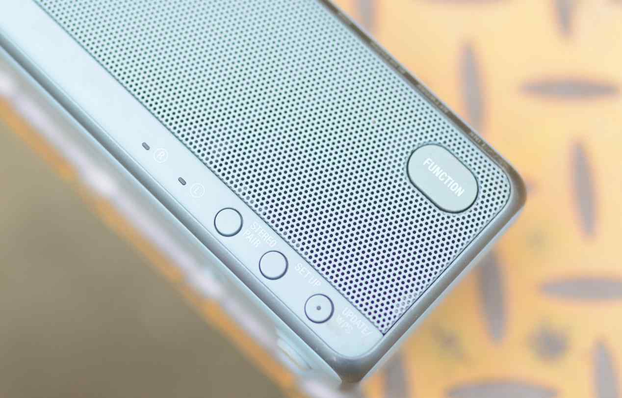 先看索尼SRS-HG10音箱的外观。可以说设计很简单。正面只有索尼Logo,所以没有其他设计,呈现简约风格。这次我得到的是薄荷绿,除了月光蓝,浅金,暮红,黑灰。一共五种颜色,还有很多颜色。机身很小,放在任何位置都不会占用空的大空间。