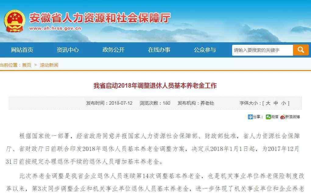 2.《安徽省2017年养老金上调最新消息 重磅!安徽2018年养老金上调方案出炉!调整标准.....》仅供读者参考,本网站未对该内容进行证实,对其原创性、真实性、完整性、及时性不作任何保证。
