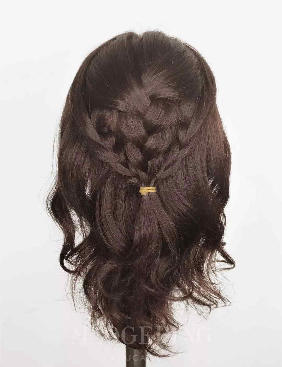 第五步:把辫子和头发拉成一个整体。最好是用卷发棒烫出轻微的弧度,让整个发型看起来更俏皮可爱~