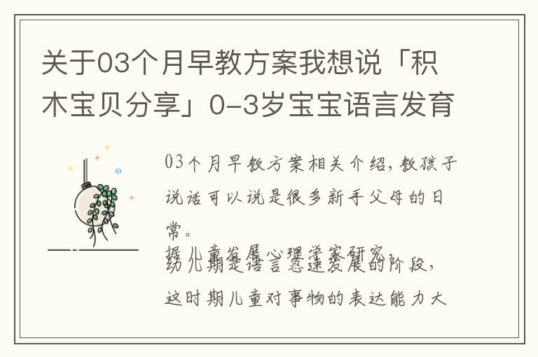 2.《关于03个月早教方案我想说适合0-6个月大的早教方案,聪明家长直接拿来用》仅供读者参考,本网站未对该内容进行证实,对其原创性、真实性、完整性、及时性不作任何保证。