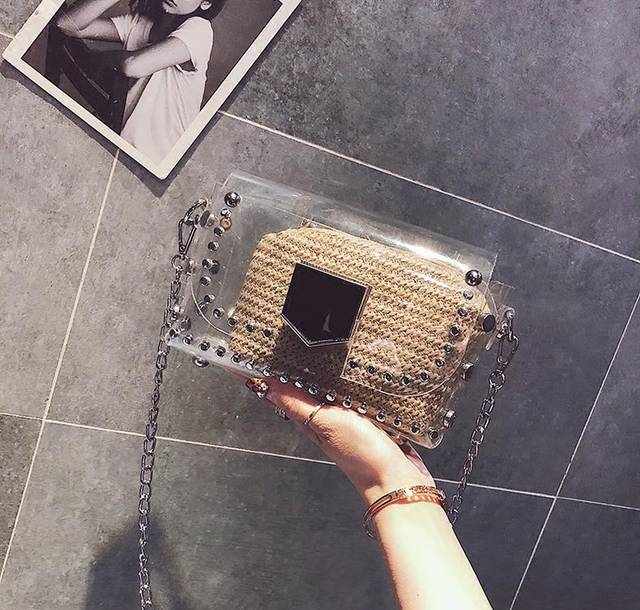 ins超火透明包包女2018新款潮韩版chic链条果冻包百搭斜挎单肩包