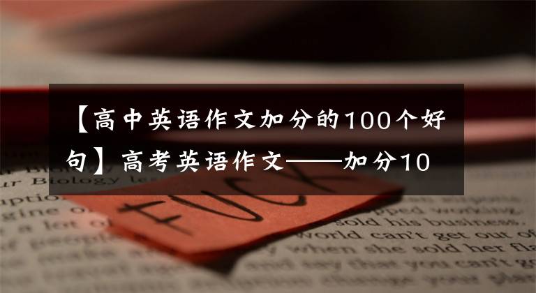 1.《【高中英语作文加分的100个好句】高考英语作文:加分100个必备好文!(相似的句型)》援引自互联网,旨在传递更多网络信息知识,仅代表作者本人观点,与本网站无关,侵删请联系页脚下方联系方式。