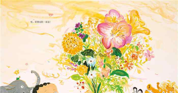 点评:春天的原野,鹤子正在给妈妈摘花,突然,掉下来一条鳄鱼,之后是大象,之后……孩子用非凡的想象,表达对妈妈的平凡之爱。画家利用温暖柔和的色彩、简单明快的线条勾画出的自然之美与故事融合在一起,带给孩子一种独特的视觉体验。这是一本表现独特视角的绘本,东西掉下来时天空的颜色、孩子的表情、景色的融合都表现得很到位。妈妈的出场很棒!完全超乎想象的、出人意料的故事情节,强烈推荐给孩子们。