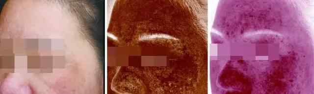 患者女,45岁,面部棕褐色色斑呈不规则状伴血管扩张明显。日常护肤中常行“去角质”治疗。
