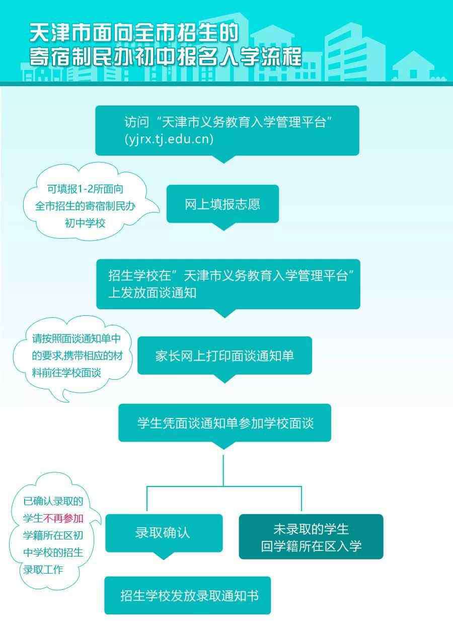 我市面向全市招生的寄宿制民办初中实行网上统一报名,有意愿报名的学生,请登录“天津市义务教育入学管理平台”,参加面向全市招生的寄宿制民办初中的网上报名。