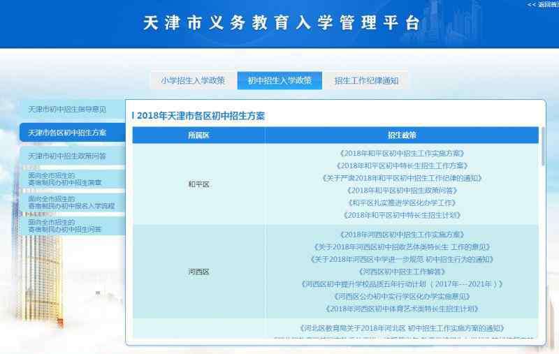 天津各区的小学、初中招生入学政策