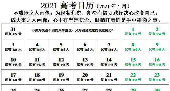 2.《2021日历 2021高考时间倒计时日历》仅供读者参考,本网站未对该内容进行证实,对其原创性、真实性、完整性、及时性不作任何保证。