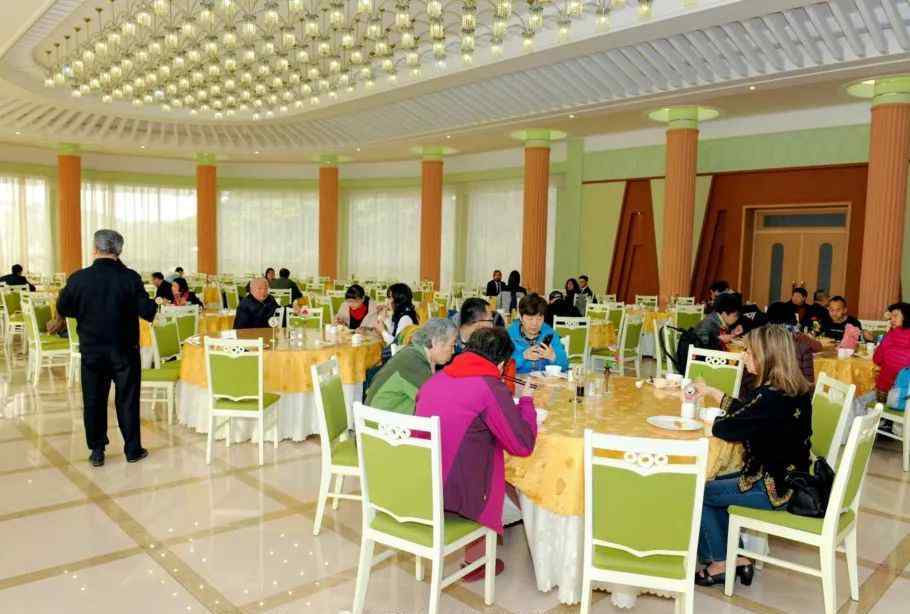 在朝鲜,男同性恋每月供应18公斤食物,女同性恋每月供应16公斤食物。我们对此表示怀疑。到了朝鲜之后,我们并不觉得吃不饱。相反,每一顿饭都让我们充满了好奇。当我们进入餐馆时,我们有一张四到六个人的桌子,八个菜和一份汤,还有海鲜。主食比我们想象的丰富多了,比我们以前在其他国家吃的好吃多了。在朝鲜的七天,午餐和晚餐,每天都不一样。