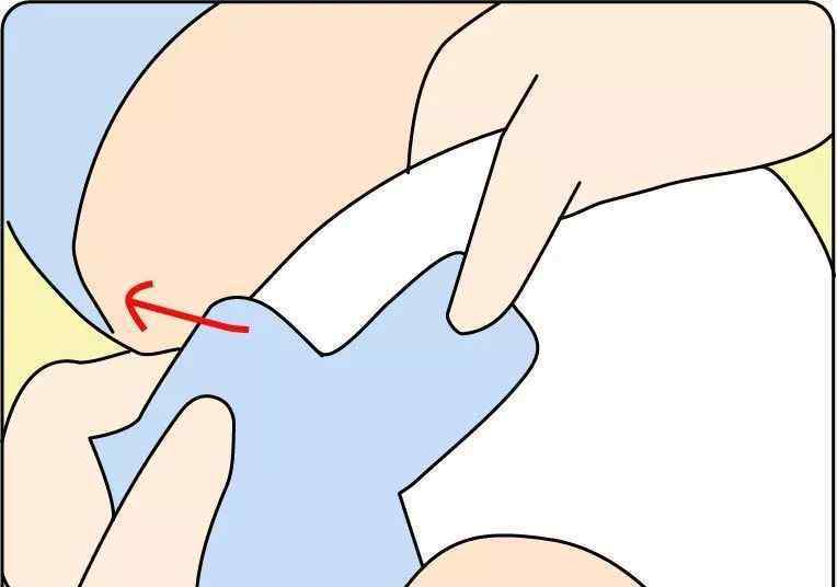 1)换新尿布时,保持两侧下摆直立,将尿布垂直提起至肚脐以上,以顺从的方式盖住婴儿的屁股。