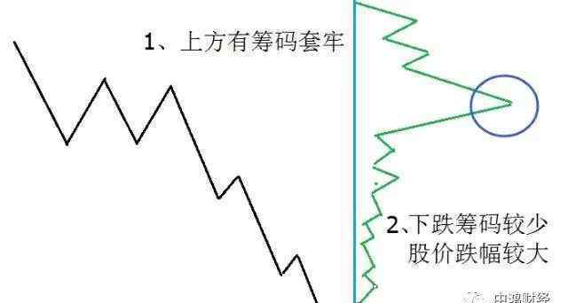 如图:1。筹码锁在最上面。2.下落的筹码很小,可以认为是“真空”。3.下盘筹码的“true 空”表示下跌还会继续,下跌无底洞。4.然后随着筹码峰值下移,下方筹码上方的筹码密度已经很小,反弹还会继续。