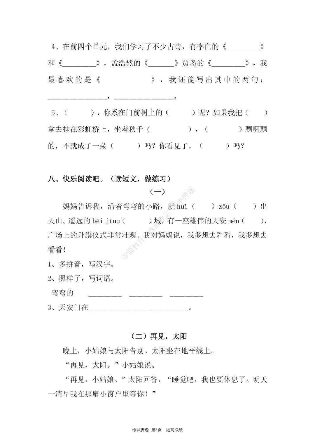 2.《一年级下册语文期中试卷 部编人教版一年级语文下册期中考试测试卷5套带答案》仅供读者参考,本网站未对该内容进行证实,对其原创性、真实性、完整性、及时性不作任何保证。