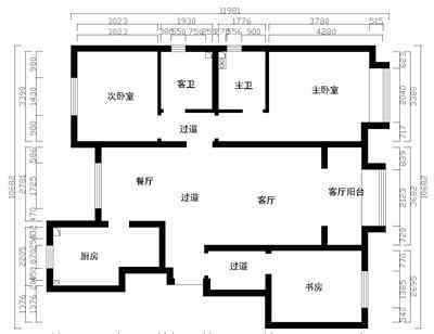 拆除餐厅的部分墙面,加长厨房附近的墙面。影视墙面积放大,保持与沙发背景墙齐平。确保客人餐厅是一个完整的常规空房间。这样的设计,整体的结构设计会让空房间更加整体和舒适。