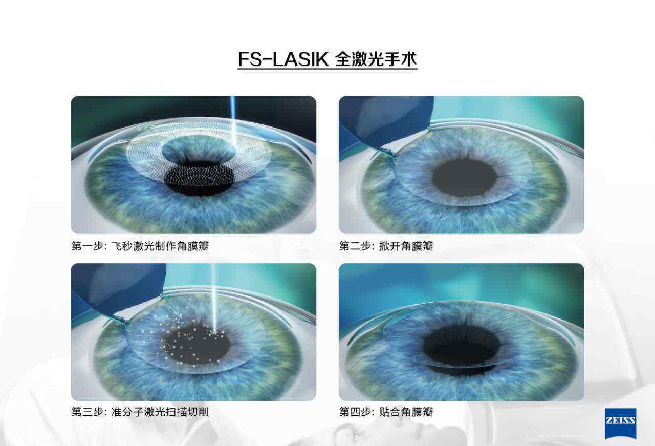 半飞秒全激光手术安全无痛。用飞秒激光制作角膜瓣,然后用准分子激光抛光角膜基质,再复位角膜瓣。
