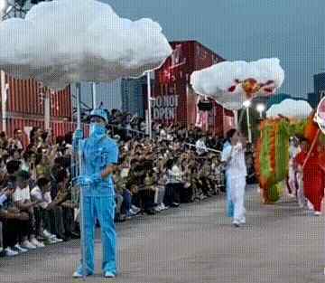 LV春夏男装秀于8月6日晚在上海举行。男明星吴亦凡穿着白色西装,带着一个身高两米的巨型娃娃。不得不说这种风格很特别。真的让人哭笑不得!哈哈哈哈!