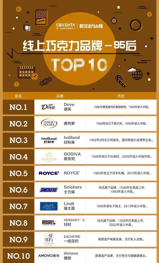 但对比一下1995年后网上巧克力消费的前十大品牌,我们可以惊讶地发现,中国有三个品牌进入了榜单,而Hollyland甚至进入了前三,粉碎了Godivan、ROYCE’等外国品牌。