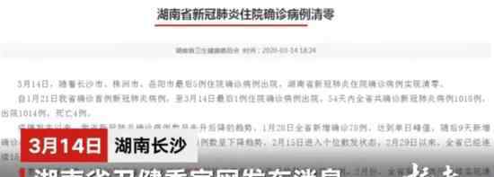 3月14日,湖南省卫生保健委员会官网宣布,新冠肺炎肺炎确诊病例已清除。1月21日,湖南省确诊首例新冠肺炎肺炎,1月28日,湖南省新增确诊78例达到单日高峰。54天内,确诊新冠肺炎肺炎1018例,出院1014例,死亡4例。
