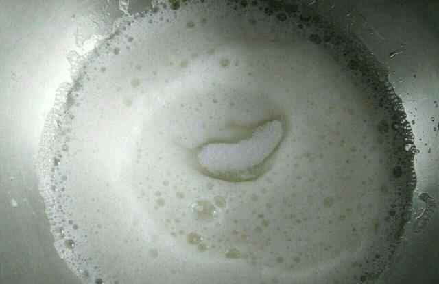 第一次加入细砂糖后,用电动打蛋器开始打,打至有D泡。