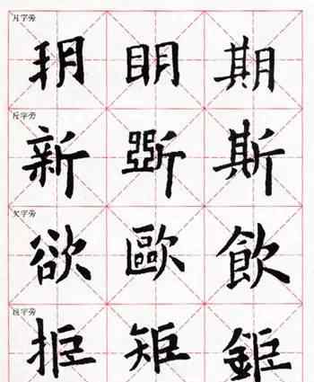 左、中、右结构由于三部分宽度,容易写得太宽,所以要控制好各部分的宽度,避免互相拥挤。我们还应该注意长度、宽度、位置等的差异。这三个部分,以及三个部分之间的有机联系,如回避和渗透,使三个部分可以整合。