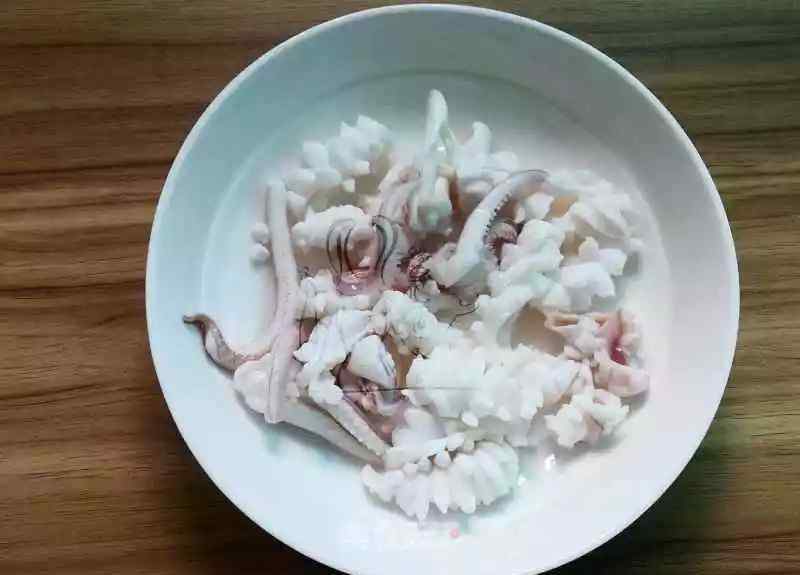 3.鱿鱼被剥去黑皮。刀具是用来切花刀的。