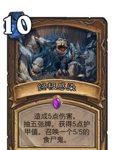 还有一张牌作为《冰封王座骑士》中展示的牌的最终感染。过五张牌真的太多了,还加了护甲,伤害,吸引陌生人等。很适合上一版的选择,但是现在的环境不一定。10费卡在快节奏的阶梯环境下没那么好玩,容易卡。所以考虑到环境,用7费溢出来代替高跟鞋可能不是不可能。