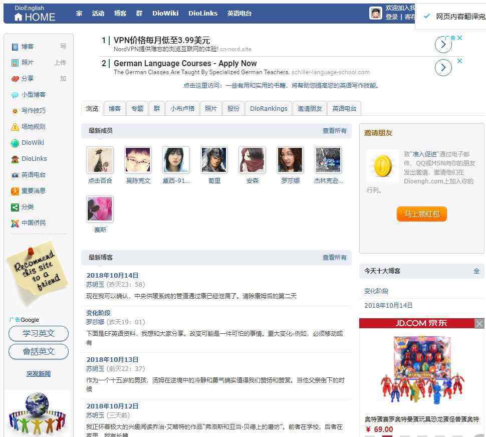 英语博客网提供英语博客写作,是一个英语社区。挺好的。练习用英语写日记,多锻炼。