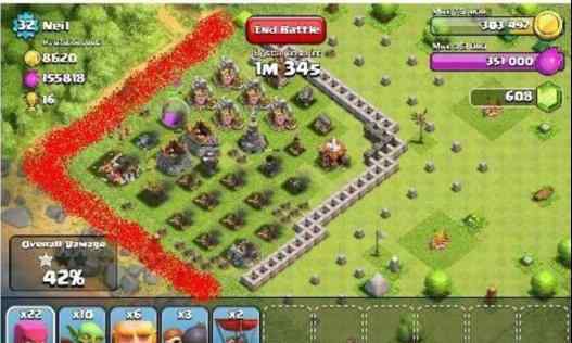 初级村庄通常会面临主城比你高一级甚至二级的玩家的攻击。在兵种级别的碾压下,再巧妙的安排,也是不堪一击。接下来我们要分析的是如何防御同级玩家的攻击,尽可能的保护你的资源。